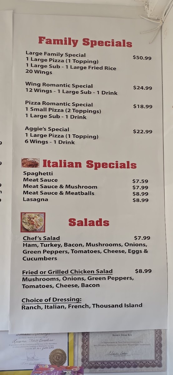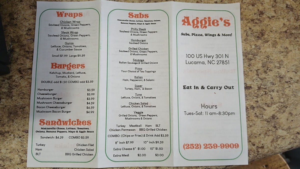 Welcome to Aggie’s Steak, a delightful eatery nestled in Lucama, NC, where flavor meets comfort. Aggie's Steak offers a diverse menu that caters to everyone, from crispy wraps to hearty combos. The Chicken Wrap Combo is a standout, featuring perfectly seasoned chicken paired with fries and a drink, all for just $4.99. For hot dog lovers, the Hotdog Combo offers two delicious hot dogs, fries, and a drink at the same great price.